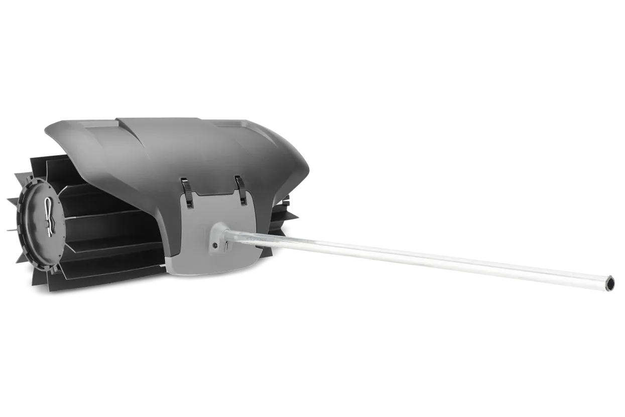 Rubber broom with large capacity that cleans sand and gravel from paths, driveways and lawns. Guard is included. Width 60 cm. Shaft diameter 24 mm. Fits 325iLK, 535LK, 525RJD, 524LK and 129LK.