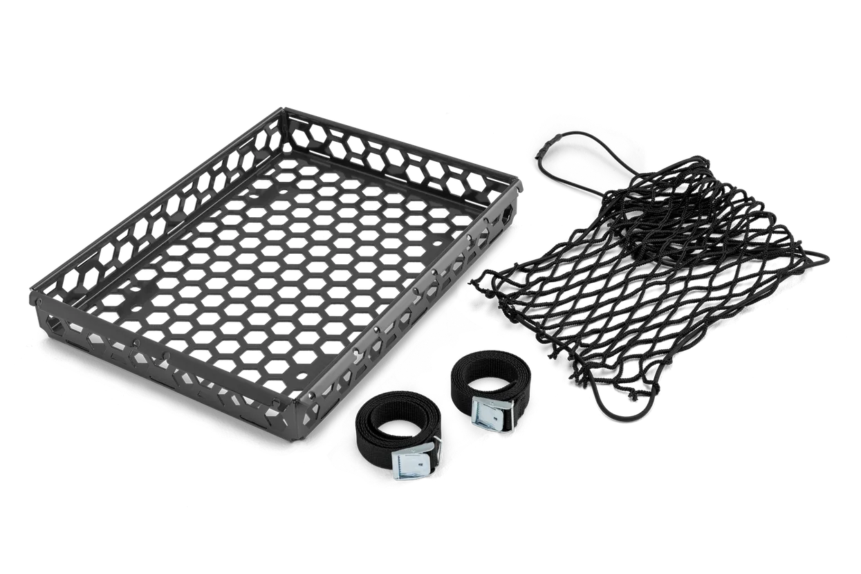 Practical carrier for extra equipment. Easy access to 12V outlet to charge handheld battery products. Rails and fixing hooks are installed on the engine hood as standard and can be completed with a convenient luggage rack kit for even greatest utility.