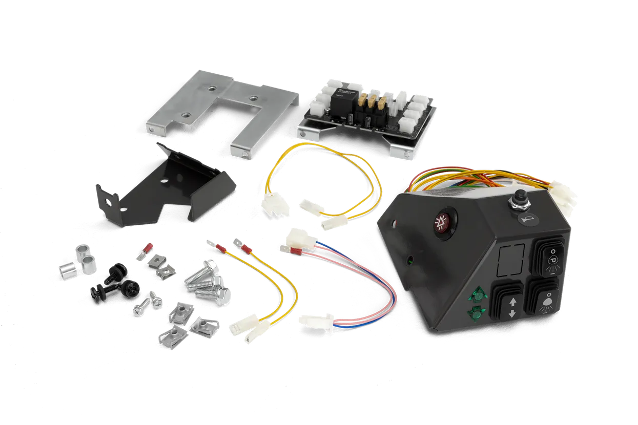 To connect and control each function of the road kit. Mounts to steering column. Mandatory for front headlights, position and turning lights and license plate kit.