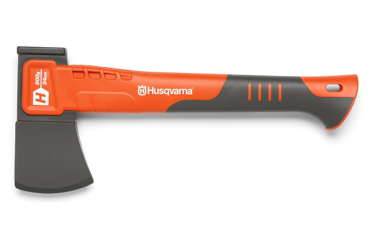 Small hatchet for firewood, garden work and trekking activities. The fiber-reinforced composite shaft features a high quality steel head with anti-friction coating for optimised cutting and splitting performance. Perfect balance and weight distribution through advanced design and head geometry for maximum swing power. Shaft handle with soft-grip for optimal strength and shock absorption and the curved end handle design ensures a firm grip. Comes with a rear hammer.