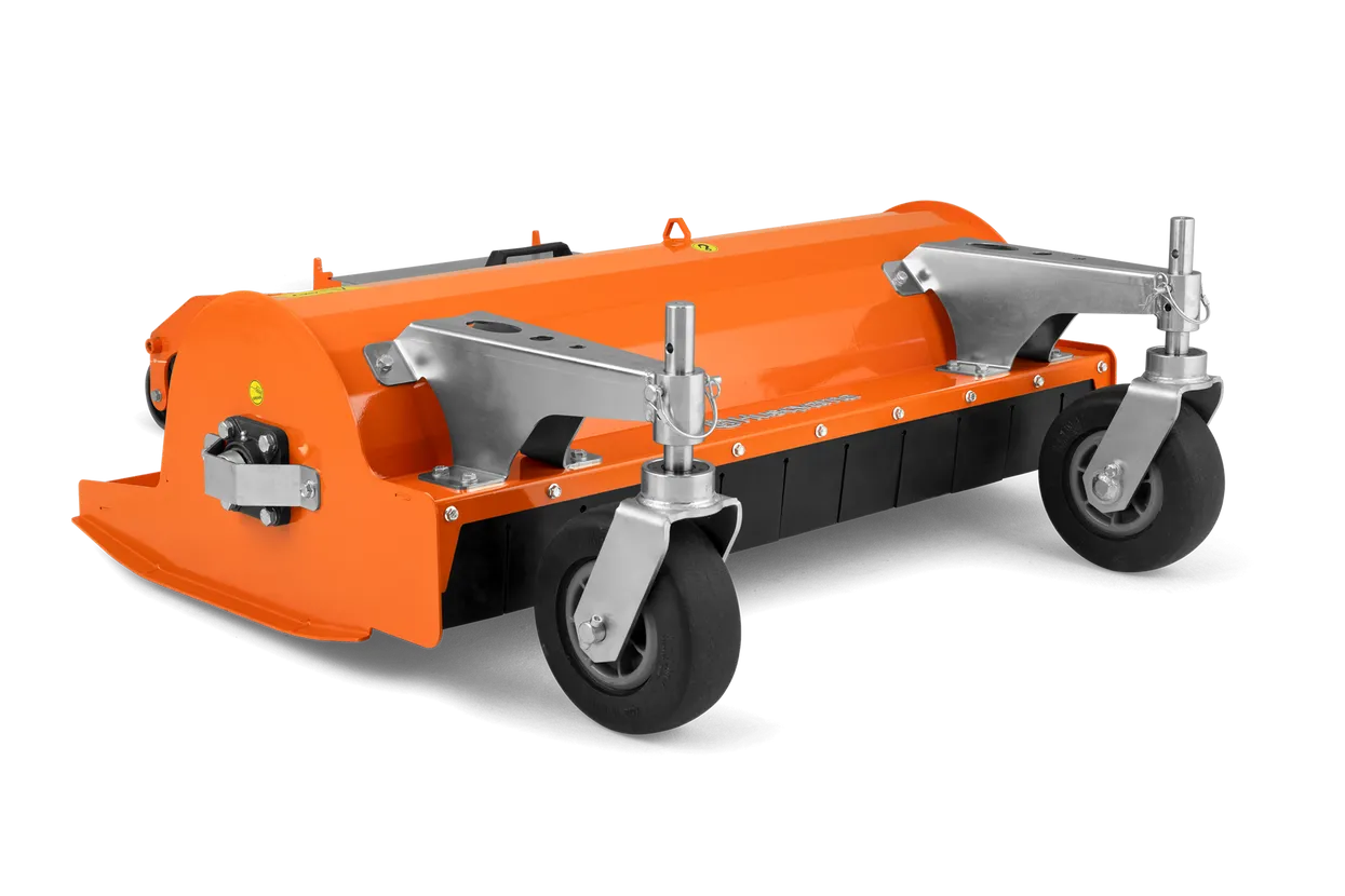 Highly efficient Flail mower for infrequently maintained overgrown areas with taller grass and woody vegetation. Equipped with puncture-free wheels, robust wheel support arms and housing made of high-strength structural steel.