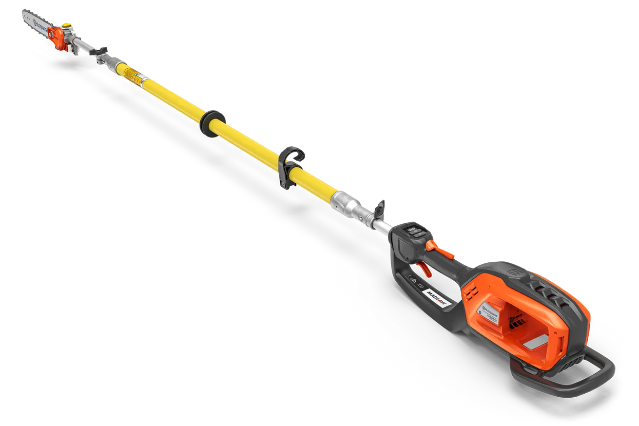 The Husqvarna 525iDEPS MADSAW is the industry’s first and only dielectric battery-powered pole saw that is individually tested to meet OSHA 1910.269 and delivers an extra measure of safety for skilled line workers, utility workers, and tree care professionals. The MADSAW can be used in the bucket, in the tree, or on the ground for extreme versatility. Purposeful design allows the pole saw’s sections to quickly disconnect for secure storage in a tree care truck or utility vehicle. More productive than a manual saw and as powerful as a hydraulic pole saw, the battery-powered MADSAW makes pruning and limbing projects more efficient than ever before.