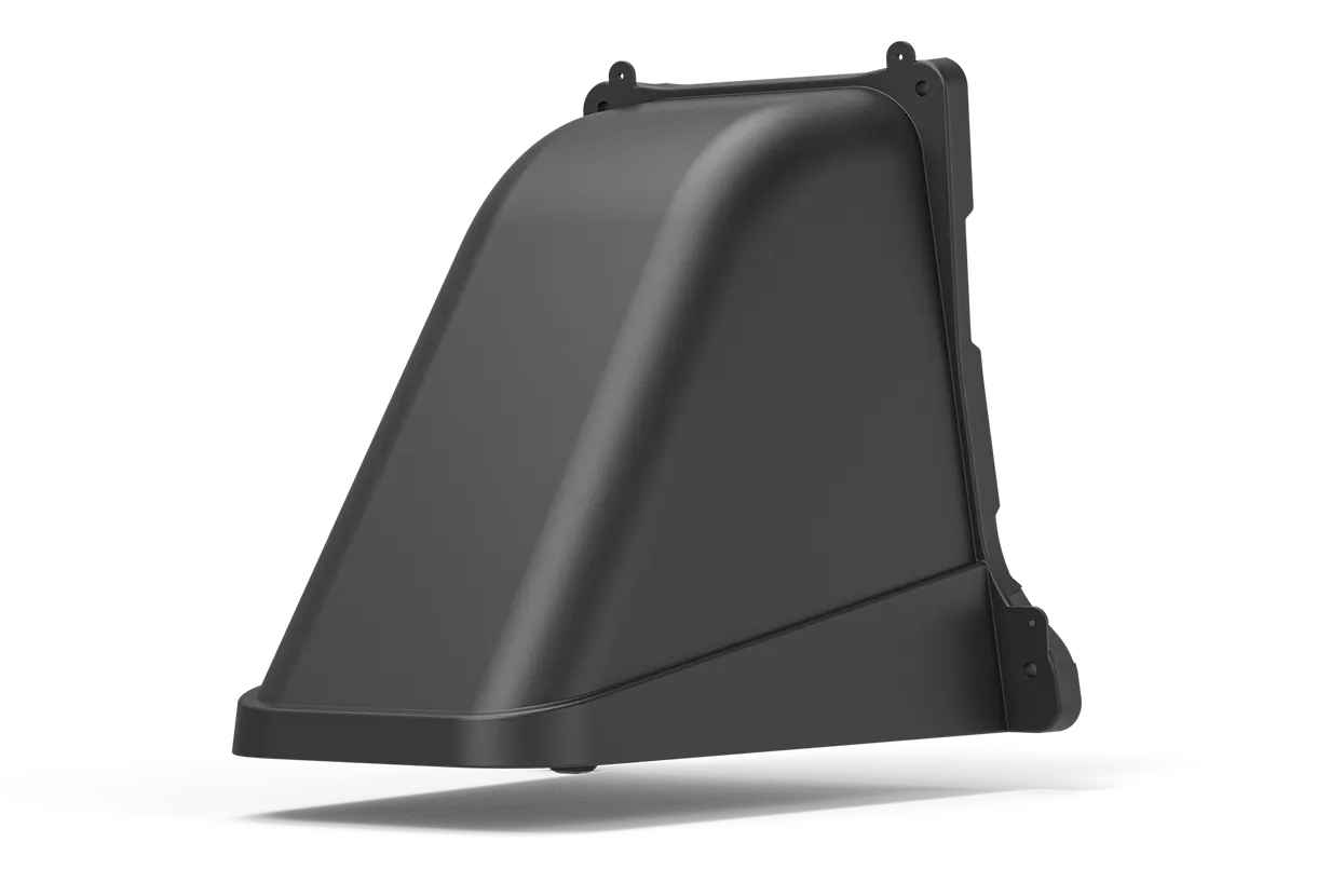 Deflector for collecting garden tractors in the Husqvarna 100-series. Attaching the deflector converts the cutting method from collection to rear ejection so the grass clippings are directed backwards and downwards.