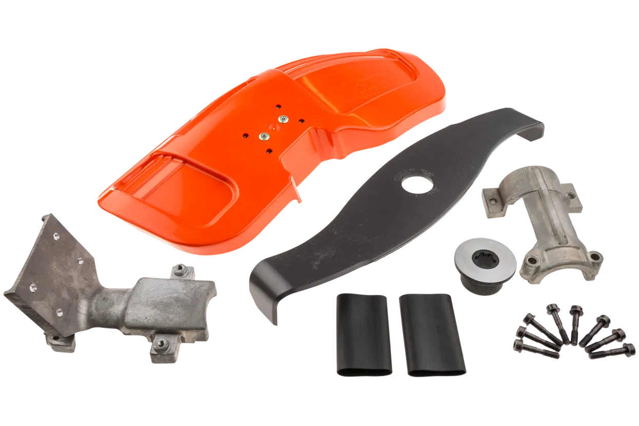 Simplifies effective cutting and shredding of dense, tough grass. Contains guard, blade, holder, bracket and support flange.