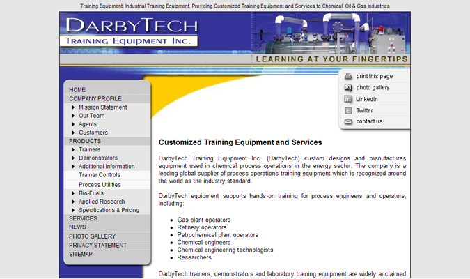 DarbyTech Training Equipment Inc. (DarbyTech) custom designs and manufactures equipment used in chemical process operations in the energy sector. The company is a leading global supplier of process operations training equipment which is recognized around the world as the industry standard.