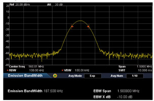 These include T-Power, ACP (Adjacent Channel Power), Chan Pwr (Channel Power), OBW (Occupied Bandwidth), EBW (Emission Bandwidth), C/N Ratio, Harmo Dist (Harmonic Distortion) and TOI (Third Order Intermodulation). For advanced measurement functions, the measurement mode can be single or continuous and you can control the measurement including Restart, Pause and Resume.