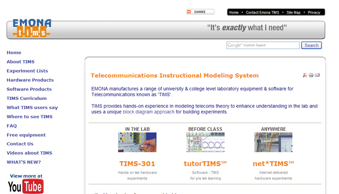 • Products: TIMS 301/C Advanced Telecoms Modeling System, net*TIMS for distance education, BiSKIT experimenter for TAFEs;