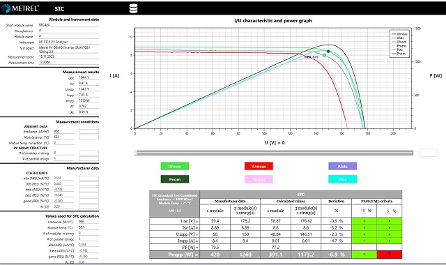 • Calculation of STC values and comparison with nominal data.