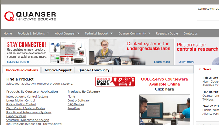 • Based in Canada, for over two decades Quanser has the led in the development of advanced control systems that bridge the gap between education and industry.