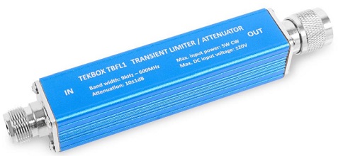 The TBFL1 is a combined transient limiter / attenuator / high pass filter, designed to provide optimum protection of spectrum analyzer or measurement receiver inputs when carrying out conducted noise measurements or other measurements where the input levels cannot be predicted with certainty or where accidental overloads may occur.