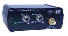 The TBMDA2 modulated wideband driver amplifier is designed in order to create an inexpensive signal source for immunity testing of electronic building blocks and products. It is designed to be driven by the tracking generator output of spectrum analyzers. With its 1dB compression point of +27dBm, it can boost the output power of a tracking generator up to 500mW. The TBMDA2 is ideal to drive Tekbox near field probes in order to find the sensitive spot of an electronic circuit or to create electric fields up to 170V/m when driving the Tekbox TEM Cell TBTC0, 100V/m when driving the TBTC1, 50V/m when driving the TBTC2 or 30V/m when driving the TBTC3. Test signals for immunity testing can be CW, AM or PM. Consequently, the TBMDA2 provides built in modulation capability to generate 1 kHz AM or PM signals. In PM mode, the TBMDA2 can also generate a 217 Hz Signal with 12.5% duty cycle in order to simulate mobile phone TDMA noise.