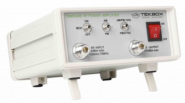 The TBMDA4B is ideal to drive Tekbox near field probes in order to find the sensitive spot of an electronic circuit or to create electric fields up to 550V/m when driving the Tekbox TEM Cell TBTC0, 300V/m when driving the TBTC1, 150V/m when driving the TBTC2 or 100V/m when driving the TBTC3. Test signals for immunity testing can be CW, AM or PM modulated. Consequently, the TBMDA4B provides built in modulation capability to generate 1 kHz AM or PM signals. In PM mode, the TBMDA4B can also generate a 217 Hz Signal with 12.5% duty cycle in order to simulate mobile phone TDMA noise.