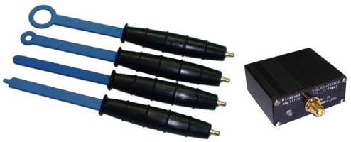 The TBWA2/20dB and TBWA2/40db wideband amplifiers are connected between EMC probe and Spectrum Analyzer to increase the dynamic range of the measurements.