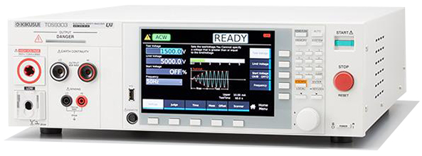The TOS9300 series is a high performance electrical safety analyzer that complies to a wide range of universal standards. Hipot, Insulation Resistance, Ground Bond, Leakage Current (touch current and protective conductor current) and partial discharge can all be tested. A total of 6 models are available for standard compliance tests in a wide variety of applications including R&D, quality assurance manufacturing lines and laboratory tests.