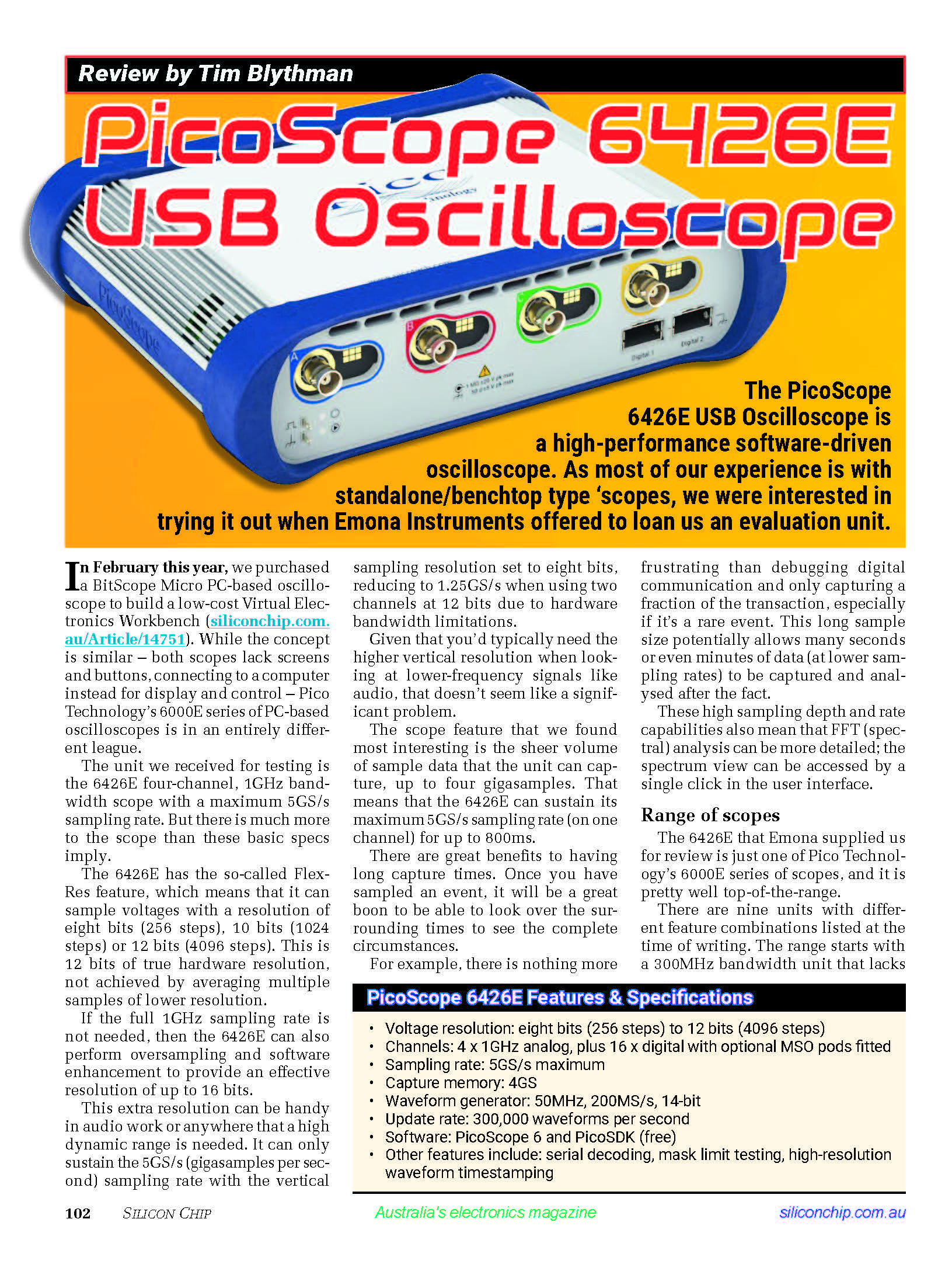 Check out the review at: Silicon Chip August 2021 “PicoScope 6426E USB Oscilloscope Review”