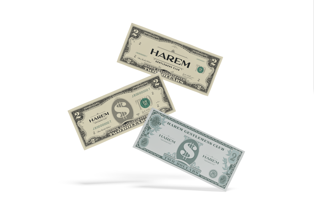 Take your night to the next level with Harem Tipping Dollars-the fun, flirty way to show your appreciation for our entertainers. Available in minimum bundles of $20 (10 notes at $2 each). Tipping Dollars can be purchased through our service waitresses, hostesses, at the bar, or at reception.